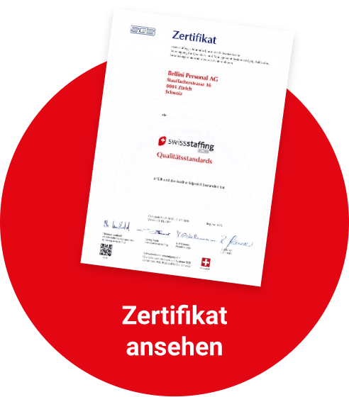 Procedure di controllo ufficiali e periodiche confermano che lavoriamo in modo professionale in tutti i settori. Il nostro sistema di gestione della qualità è certificato secondo i severi requisiti di swissstaffing SQS, un marchio di qualità che sottolinea il nostro impegno per la qualità e l'affidabilità.